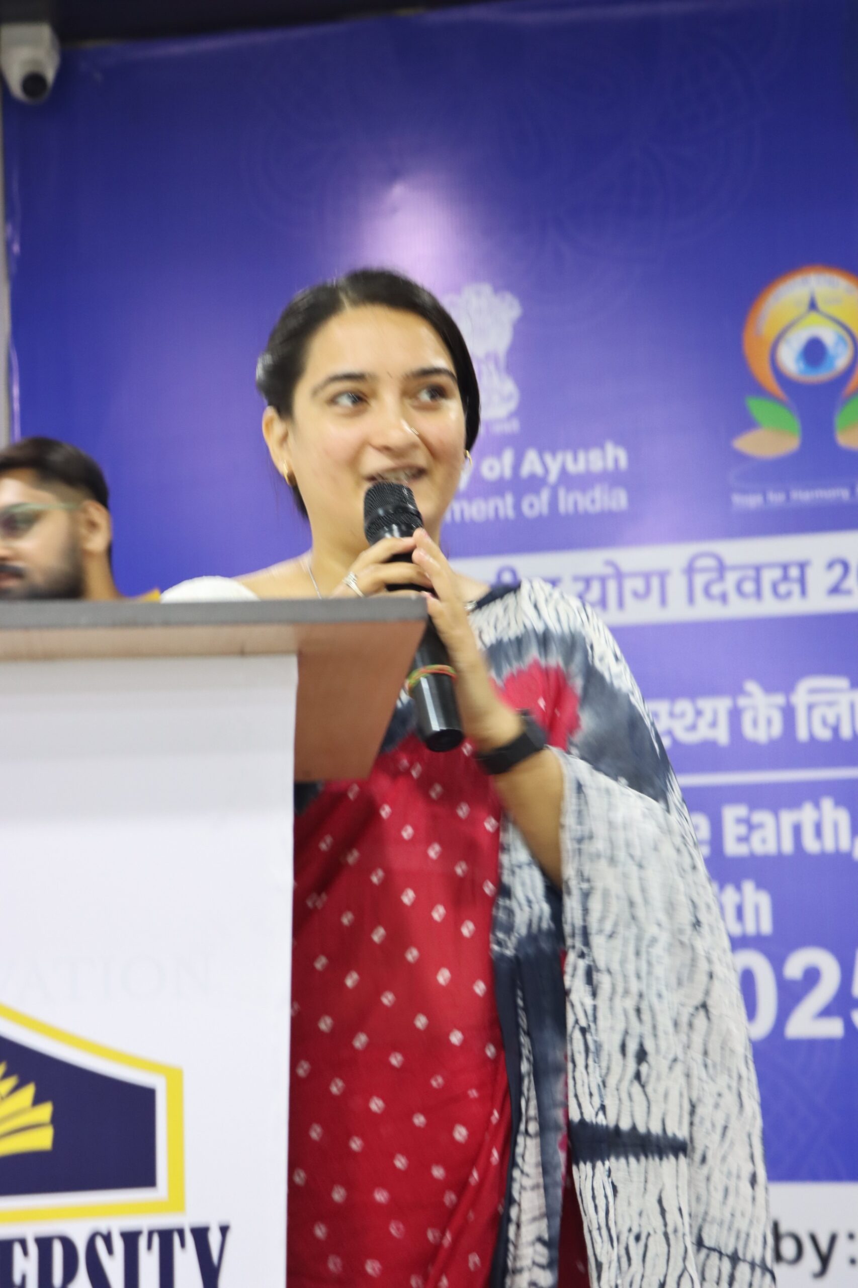 Mr. Vaibhav Sharma, Founder of Darsh Yog, addressed the relevance of yoga in today’s fast-paced, technology-driven lifestyle. He emphasized mindfulness, concentration, and inner harmony through simple and practical yogic techniques, inspiring participants to incorporate yoga into their daily routines for stress relief and self-awareness.